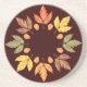Yellow, orange, brown, and green leaves arranged in a circle.
