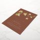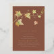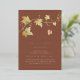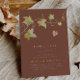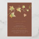 Fall in love with these modern and minimal invitations for autumn engagement parties. Clean, minimalist design features a warm terracotta rust background graced with watercolor leaves in fall colours. "Fall in Love" appears in gold foil lettering, with your engagement party details beneath.