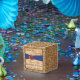 Autumn Leaves, FAUX Burlap Favour Box - Blue