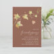 Fall in love with these modern and minimal invitations for Friendsgiving. Clean, minimalist design features a warm terracotta rust background graced with watercolor leaves in fall colours. Your Friendsgiving Thanksgiving dinner celebration details appear aligned at the lower right in off white lettering.