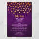 This rustic and grunge wedding menu features gold leaves on a purple distressed background. The text combines italic and serif fonts for a modern and stylish look. This will be perfect for autumn fall weddings.