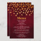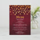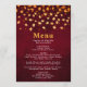 This rustic and grunge wedding menu features gold leaves on a red distressed background. The text combines italic and serif fonts for a modern and stylish look. This will be perfect for autumn fall weddings.