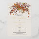 Celebrate your special day with this elegant autumn-themed wedding invitation, featuring stunning watercolor artwork of fall foliage. The front of the card showcases a beautiful arrangement of burnt orange, rust, and golden leaves, accented with luxurious gold foil script that adds a touch of sophistication. The back of the card continues the autumnal theme with a complementary design of vibrant fall leaves and flowers. Perfect for an autumn wedding, this invitation captures the essence of the season with its warm colours and elegant details. Ideal for couples looking to bring the beauty of fall into their wedding celebration.