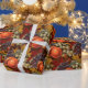 Green and purple grapes, apples, and red and gold leaves adorn this vintage pattern, which is a collage of retro harvest and autumn designs. The deep reds, purples (auburgine), shiny apples, and gorgeous leaves gives this deep-coloured design a classic, warm feel, perfect to help wrap that gift. This would also nicely dress up a Thanksgiviing, wine-related or fall gift.