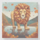 Autumn Leaves Male Lion, this creative design features a male lion made entirely of autumn leaves standing on a lake with a beautiful reflection.