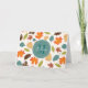 This design features a pretty autumn leaf pattern. The centre has a blue circle with a white dashed border, personalise this card with your name and initial.