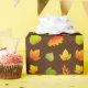 Autumn leaves on dark brown wrapping paper.