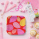 Autumn leaves . Pink, yellow, orange leaves on a bright red textured background.