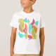 100% cotton so perfect for summer, It is a nicely designed t-shirt, the fabric is soft and the seams finished well, the body of the t shirt has no side seams. I bought a medium size for my two grandsons, aged 9 and 8 it will be slightly big on them but I would rather that than too small