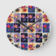 Autumn Leaves Rustic Patchwork Quilt Collage Round Clock