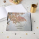 A rustic photo of fall leaves in a forest. This wedding guest book is part of a complete set.