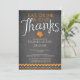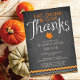 Modern Eat, Drink & Give Thanks typography set on a popular charcoal background with an orange leaf and a pretty flourish border. Flip our thanksgiving dinner invitation over to view a matching back for an extra special touch. Beautiful & unique invitation for your Thanksgiving day celebration.