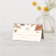 Chic autumn floral place card or escort card design features a top border of falling watercolor leaves in vibrant fall colours, with your initials and wedding date in the centre. Lines are provided for handwritten or calligraphied guest names and table numbers. Designed to match our Autumn Leaves wedding and event collection.
