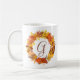 Customisable mug featuring leaves wreath. This whimsical monogram fall mug will be perfect as a gift.