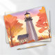 Autumn Lighthouse | Fall Foliage Watercolor Postcard