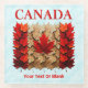 Canada's national maple leaf flag, formed from fallen Autumn leaves, on a snowy background image. Text reading, "CANADA" appears in red above the flag. Customise by adding your own additional text.