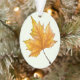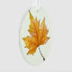 Photograph of a maple leaf with the typical colours of autumn in gold, yellow, with hints of green.