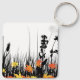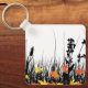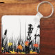 Autumn Maple Leaves and Wild Grass Silhouette Key Ring