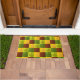 Fall colours the outline of maple leaves on gold, brown, and green.