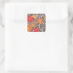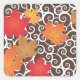 Add a bold pop of fall colour with this square sticker featuring vibrant red, orange, and gold maple leaves scattered across a rich brown and white scrollwork pattern. The eye-catching all-over design works beautifully as an envelope seal, favour accent, or decorative label for your autumn wedding. Customise to suit your seasonal celebration needs.