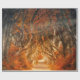 A beautiful fall illustration of maple trees weeping over a golden, sunlit trail in a forest / woods. Perfect for fall, autumn. In colours of orange, yellow, gold and brown.