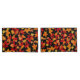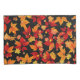 Autumn Midnight, display a vibrant pattern of autumn leaves against a black background. The leaves are a mix of bright red, orange, yellow, and gold hues, representing a variety of species like maple, oak and chestnut. `the contrast between the vivid colours of leaves and dark background creates a striking and dramatic effect, emphasizing the warm tones and intricate detail of the foliage. smaller leaves, acorns and twigs are scattered throughout, adding depth and texture to the pattern. The overall has design has an energetic and festive feel of a lively autumn night.