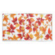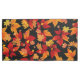 Autumn Midnight, display a vibrant pattern of autumn leaves against a black background. The leaves are a mix of bright red, orange, yellow, and gold hues, representing a variety of species like maple, oak and chestnut. `the contrast between the vivid colours of leaves and dark background creates a striking and dramatic effect, emphasizing the warm tones and intricate detail of the foliage. smaller leaves, acorns and twigs are scattered throughout, adding depth and texture to the pattern. The overall has design has an energetic and festive feel of a lively autumn night.