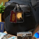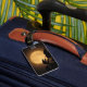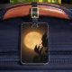 Make your luggage stand out on an airport carousel with unique tag designs! It's autumn, and a luminous golden yellow full moon has risen behind the black silhouettes of leaves blowing in the breeze on this dramatic fine art photography luggage tag. The background is illuminated in tones of orange, gold and brown to create an abstract pattern in an Asian motif. The reverse has a brown background for your customisable personal information.