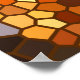 This decorative poster features a geometric abstract pattern of five sided pentagon shaped mosaic tiles in brilliant autumn colours of red, orange, brown, yellow, gold, blue, grey, black and white.