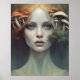 A woman and autumn mushrooms and trees fantasy AI generated art
