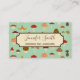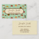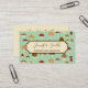 The front features a mushroom pattern on muted green. Name and profession are in a cream box. The back has space for full contact details on a cream background.