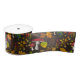 Autumn mushrooms, leaves, nuts and berries on dark satin ribbon
