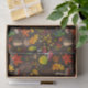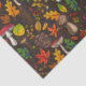 Autumn mushrooms, leaves, nuts and berries on dark tissue paper