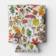 Hаnd-painted vector pattern with various autumn mushrooms, fallen leaves, acorns, berries and bugs