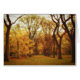 A beautiful photo of Central Park's elm trees at the peak of Autumn in New York City. The tree's gorgeous golden and yellow foliage decorate the distinctive branches and covers the ground like a carpet.
