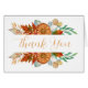 This design features "Thank You" text framed by autumn graphics. The text, font, and background color may be changed to suit any occasion or taste. The inside of the card includes a matching graphic and may be personalized with custom text or left blank.