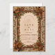 An elegant woodland design featuring golden oak leaves, acorns, and evergreens on a parchment backdrop. The vintage botanical frame and warm earthy palette bring the feeling of fall forests and rustic romance — perfect for autumn weddings or cozy countryside celebrations.