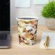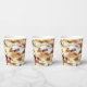 Abstract designed paper cups featuring Autumn colours of yellow, orange and green. Also available are the matching paper plates and napkins.