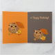 Are you looking for a special birthday card for a girl / person having her/his birthdau in the Autumn season? Perhaps this all around designed card is the one you like to buy. The vector illustration on the front shows an owl with an umbrella on a branch in the rain. There are also Autumn leaves and pumpkins. You will find the owl with a gift inside the card on the left and right side. The text on the front and the text on the inside right side are template objects. you This way it is possible to change the text easily into any other text. It is also possible to change the font size, font colour and / or font type.