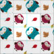 Adorable fabric design features two owls and leaves in beautiful fall colours.