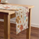 Add a touch of autumn charm to your dining area with our whimsical patchwork table runner. The delicate petals and leaves in pastel shades of orange, gold, cyan, and mauve blend seamlessly to create a kaleidoscope of autumn hues, evoking warmth and cosiness.