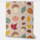 Wallpaper with an autumn Pattern including maple, beech, oak and hazel leaves, mushroom, acorn, pumpkin, chestnuts and walnuts in fall colours. A cosy design reminiscent of nature and forest for your kitchen decoration.