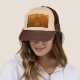 Autumn pattern with falling maple leaves and bokeh trucker hat