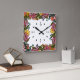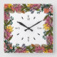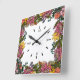autumn pink red and yellow flowers and leaves square wall clock