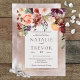 This beautiful floral design features a bouquet filled with plum, peach, pink, and marsala red flowers on a soft plum watercolor background with a gold frame. It's part of the Autumn Plum Floral Bouquet Wedding Site collection of cards created by Simply Farmhouse Press.