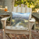 Autumn pond watercolor painting cushion