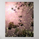 A pretty pink, white, yellow, green and black art design of sunlight reflected on water and falling autumn leaves.
