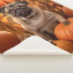 Experience the ultimate in comfort and companionship with our heartwarming cosy blanket featuring an adorable fawn coloured Pug amidst a field of pumpkins at sunset. It's the perfect invitation to get cosy with your furry friend and create precious memories together.