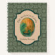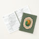 This easy to personalise recipe notebook features pastel artwork depicting a ripening pumpkin with a single leaf, stem and tendril still attached to the vine in hues of orange and green set against a fall inspired chrysanthemum pattern in two shades of green.