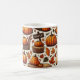 A cosy and festive autumn mug featuring a charming pattern of pumpkins, barrels, and leaves. Perfect for enjoying your favourite hot beverages during the fall season.